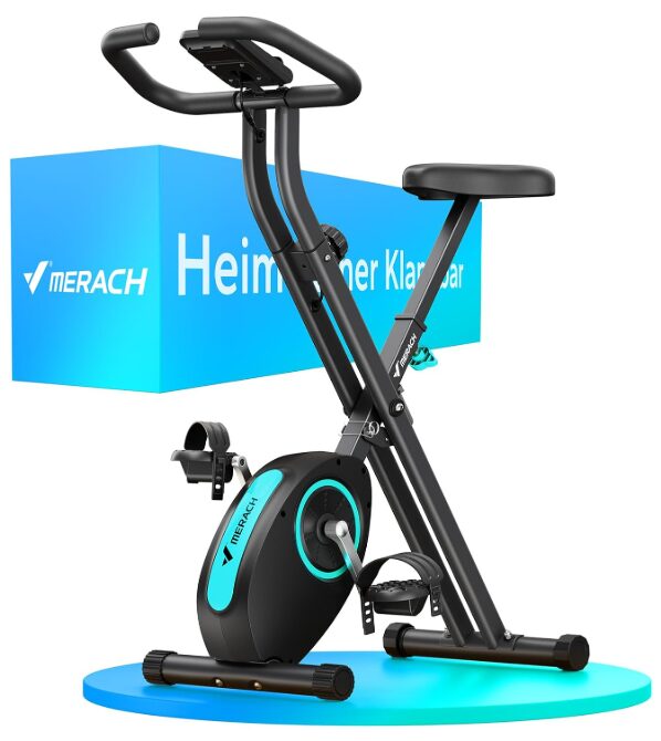 The MERACH Folding Exercise Bike is one of those budget options that tries to look a little more premium than its price tag suggests, and to be fair, it mostly gets away with it. For under £100, you are getting a foldable magnetic bike with multiple resistance levels, a basic LCD screen, and a surprisingly tidy overall design.