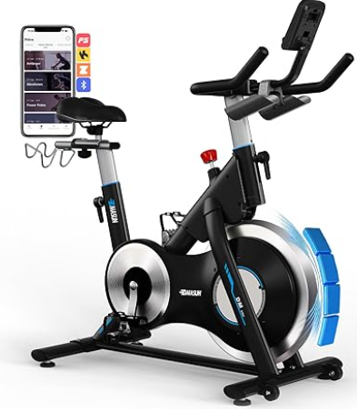 If any bike in this list tries to punch above its price bracket, it is the DMASUN New Professional Exercise Bike. This is a heavy-duty spin bike that clearly aims to feel closer to a commercial setup than a casual home trainer. The 15 kg solid flywheel combined with 0–100% magnetic resistance delivers a smooth, controlled ride that works just as well for gentle cardio as it does for intense, leg-shaking sessions. Resistance changes feel precise rather than abrupt, which is exactly what you want when pushing harder.