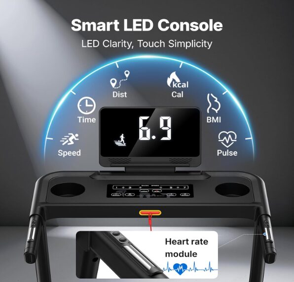 Extras like app control, Bluetooth speakers, and dual LED displays add flair, though they are not essential. Heart rate monitoring is present but basic. The Toputure is ideal for buyers who want maximum versatility from one machine and enjoy tech-heavy features. It is not the quietest or simplest option, but it offers a lot of treadmill for the money, provided you do not expect perfection.