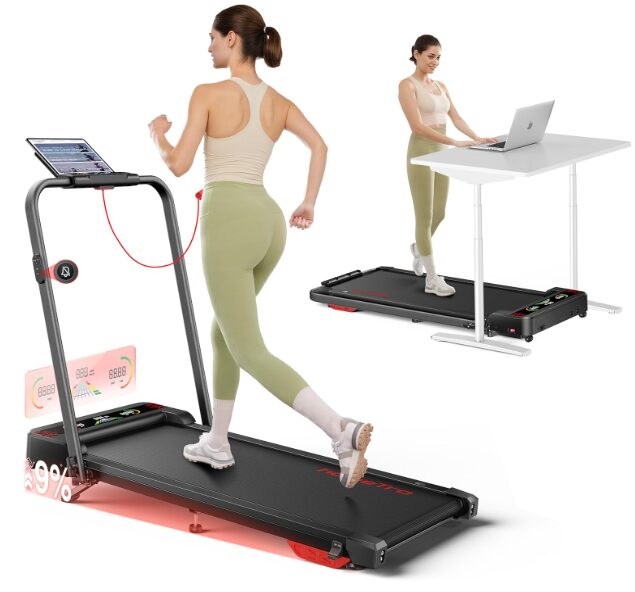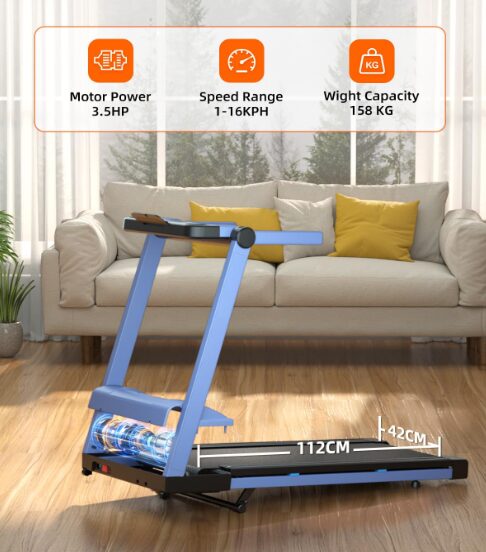 The folding mechanism allows it to switch between under-desk walking and upright running, which is genuinely useful for mixed-use households. The running belt is wide and supportive, and the shock absorption system helps reduce impact, although noise does increase at higher speeds.