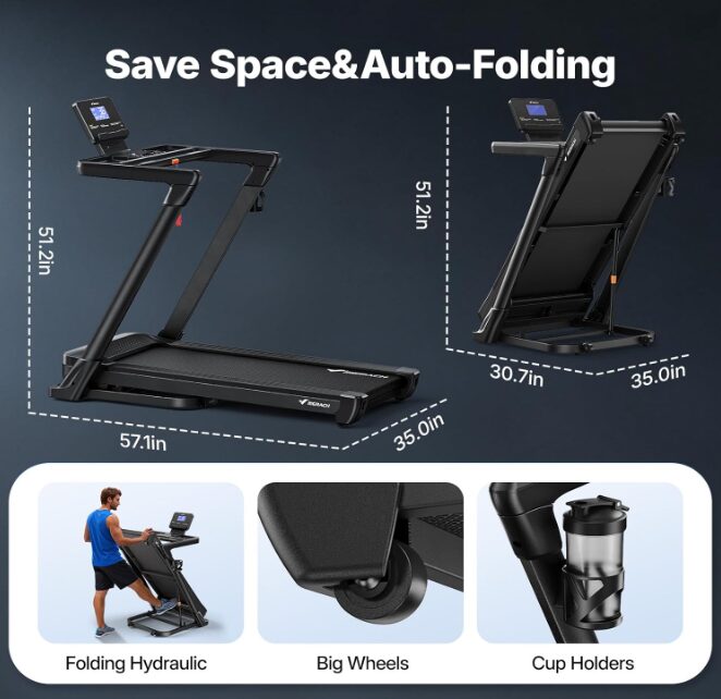 Assembly is quick, operation is straightforward, and noise levels stay reasonable thanks to the modest top speed. However, runners chasing intervals, hills, or fast-paced sessions may quickly outgrow it.