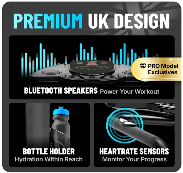 If vibration plates had a “safe pair of hands” award, the Bluefin Fitness Pro would win it comfortably. This is one of the most recognisable names in the UK vibration plate market, and for good reason. It does not try to reinvent the wheel, it just delivers consistent performance, solid build quality, and a surprisingly smooth experience.