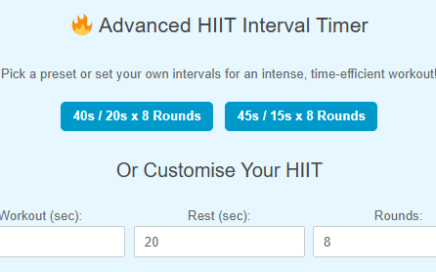Smash your workouts with this advanced HIIT timer. Choose preset 40/20 or 45/15 intervals, or customise your own workout, rest time, and number of rounds. When Seconds Matter – The Ultimate HIIT Timer High-Intensity Interval […]