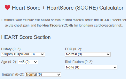 Combined HEART Score (short-term chest pain triage) and HeartScore / SCORE (approx 10-year CVD risk) calculators, with clear clinical guidance and shareable results. Know Your Heart, Fast Triage and Long-Term Risk in One Place If […]
