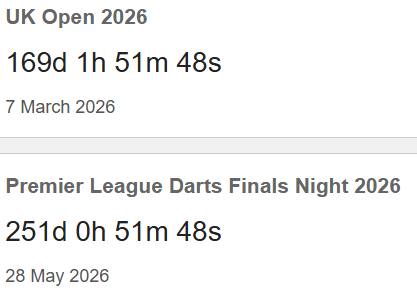 Darts Key Dates Countdown Timer