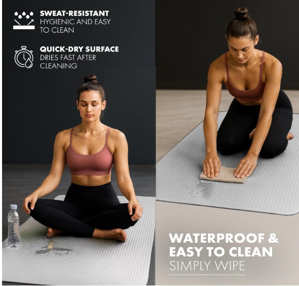 Kayman uses a 6mm thick foam construction, designed to provide cushioning without becoming overly soft or bulky. For many buyers, especially those exercising on hard floors, thickness is one of the first things they look for. The mat is described as wide and long enough for most standard floor exercises, although it is worth noting that it is not unusually large compared to premium yoga mats.