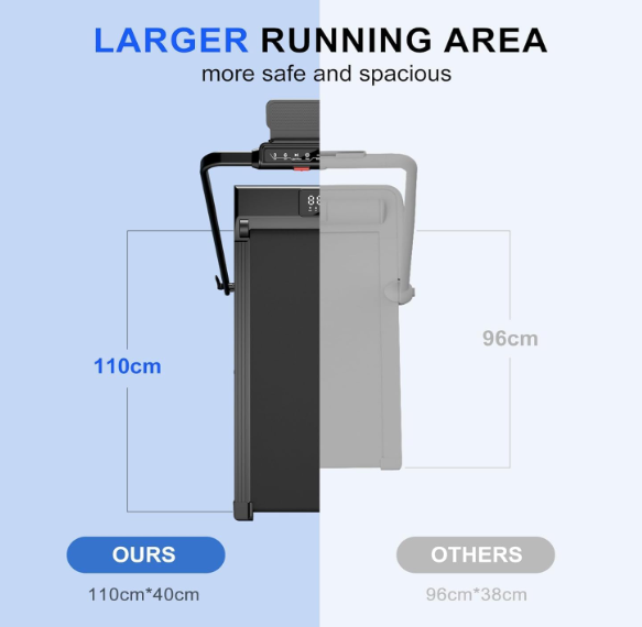 Roomy running belt – Generous 110 x 40 cm area allows plenty of space to stride forward.