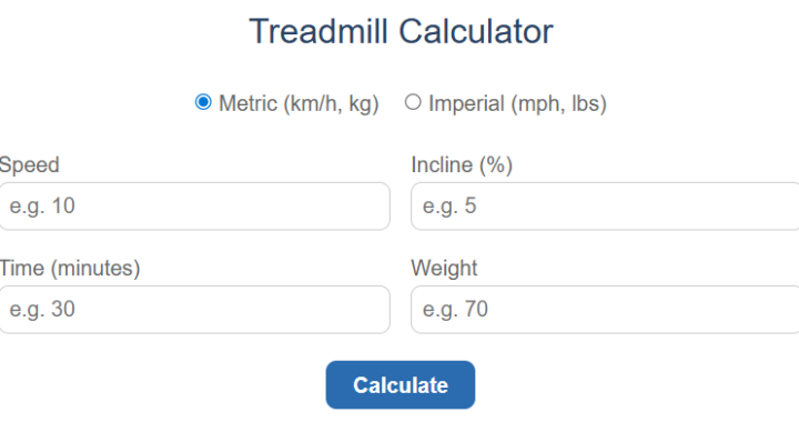 Use our treadmill calculator to quickly compute distance, pace, incline, and calories burned. Simple, accurate, and much more fun than squinting at your treadmill screen!