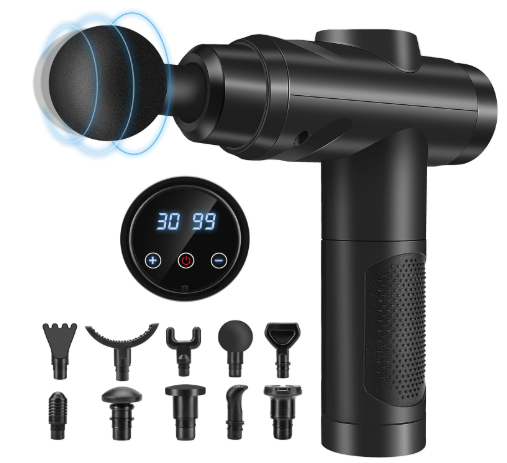This massage gun’s smart design is its true selling point. An anti-slip ergonomic handle means holding onto it during those deep tissue sessions is a breeze, even when your hands are a bit sweaty. Zero worries about dropping or losing your grip mid-massage